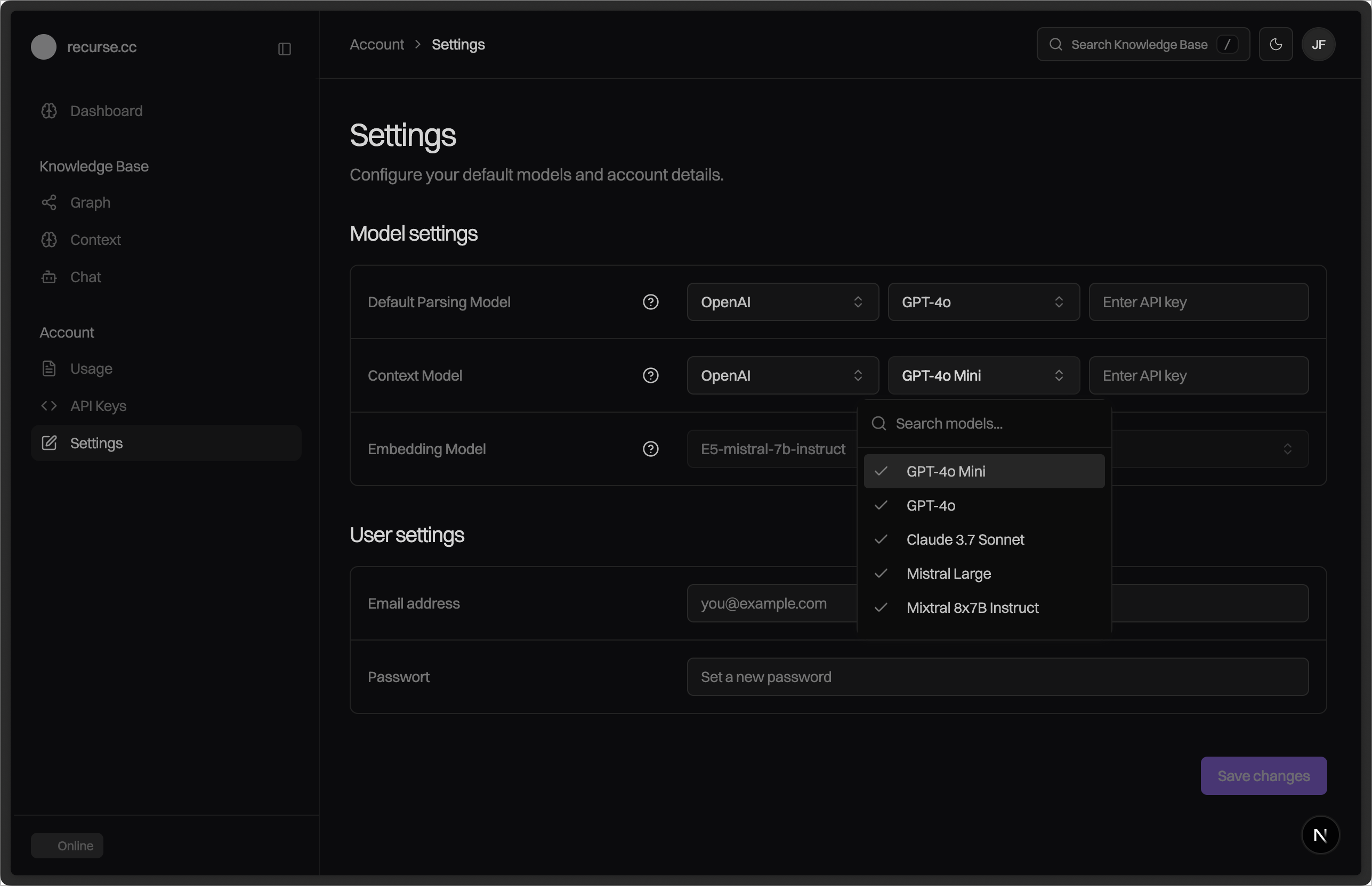 In order to parse documents into your knowledge base, you will need an API key for an AI model provider. Recurse works with any OpenAI-compatible provider. Get a key from: